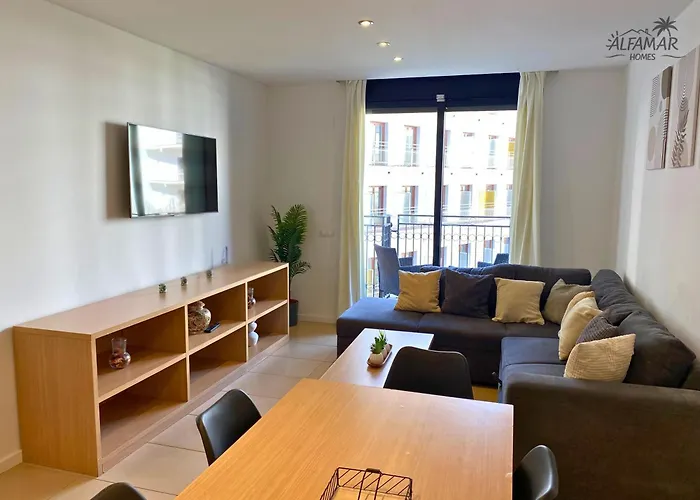 Een ingerichte keuken met koffie- en theefaciliteiten, een koelkast, een oven is beschikbaar als onderdeel van de zelfvoorzienende voorzieningen van het appartement. Museu del Mar bushalte is in de buurt van 2-slaapkamer Cozy Apartment With Parking & Swimming Pool gesitueerd.